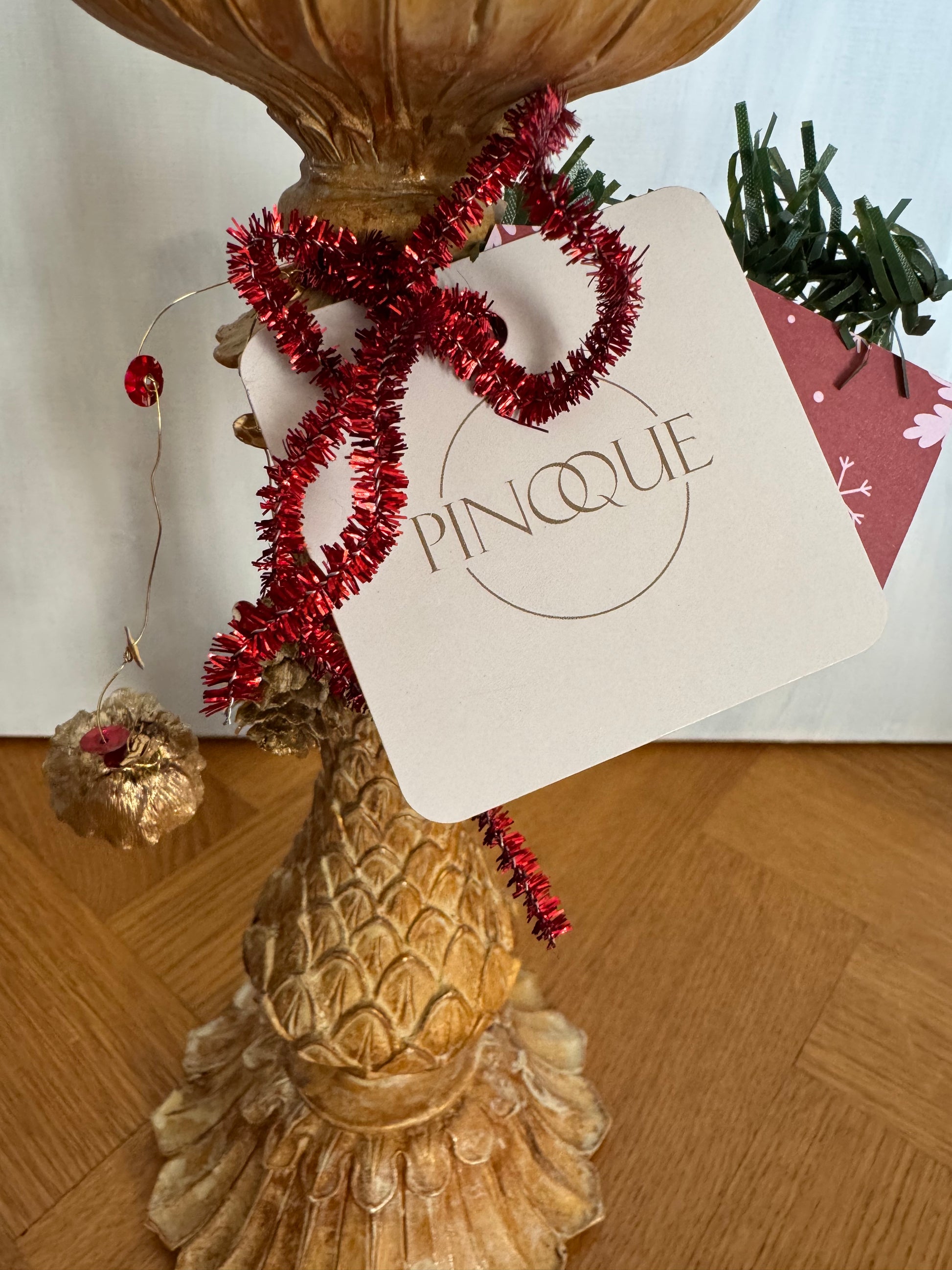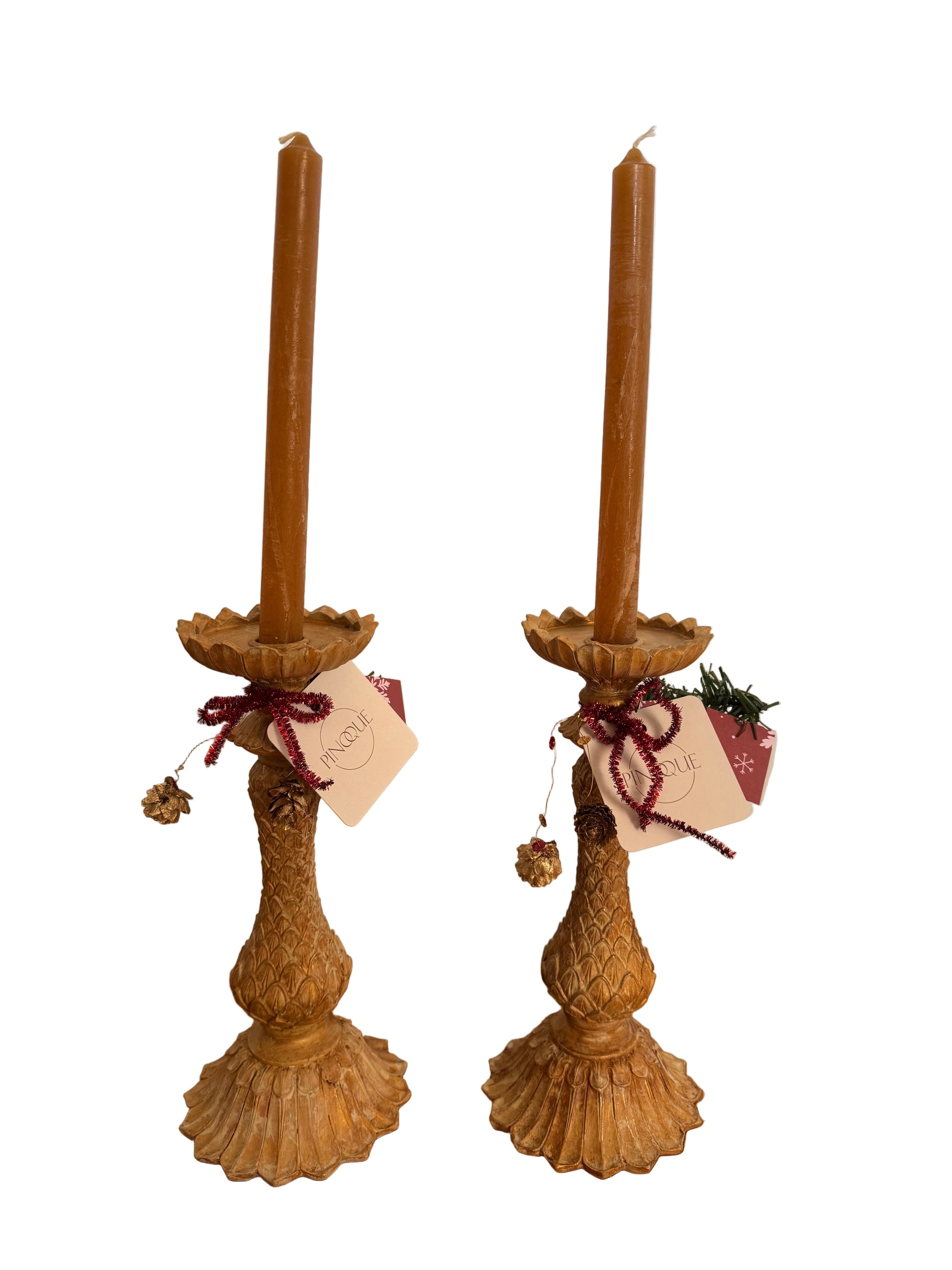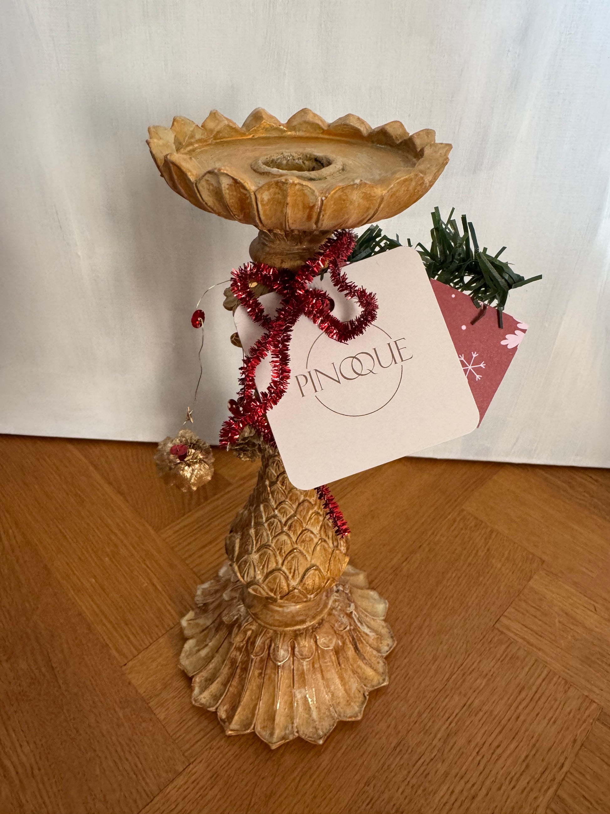 Prachtige kandelaar met een twist van Pinoque, uitgevoerd in de kleur “Biscuits” en verfijnd met een subtiele goudtint.
