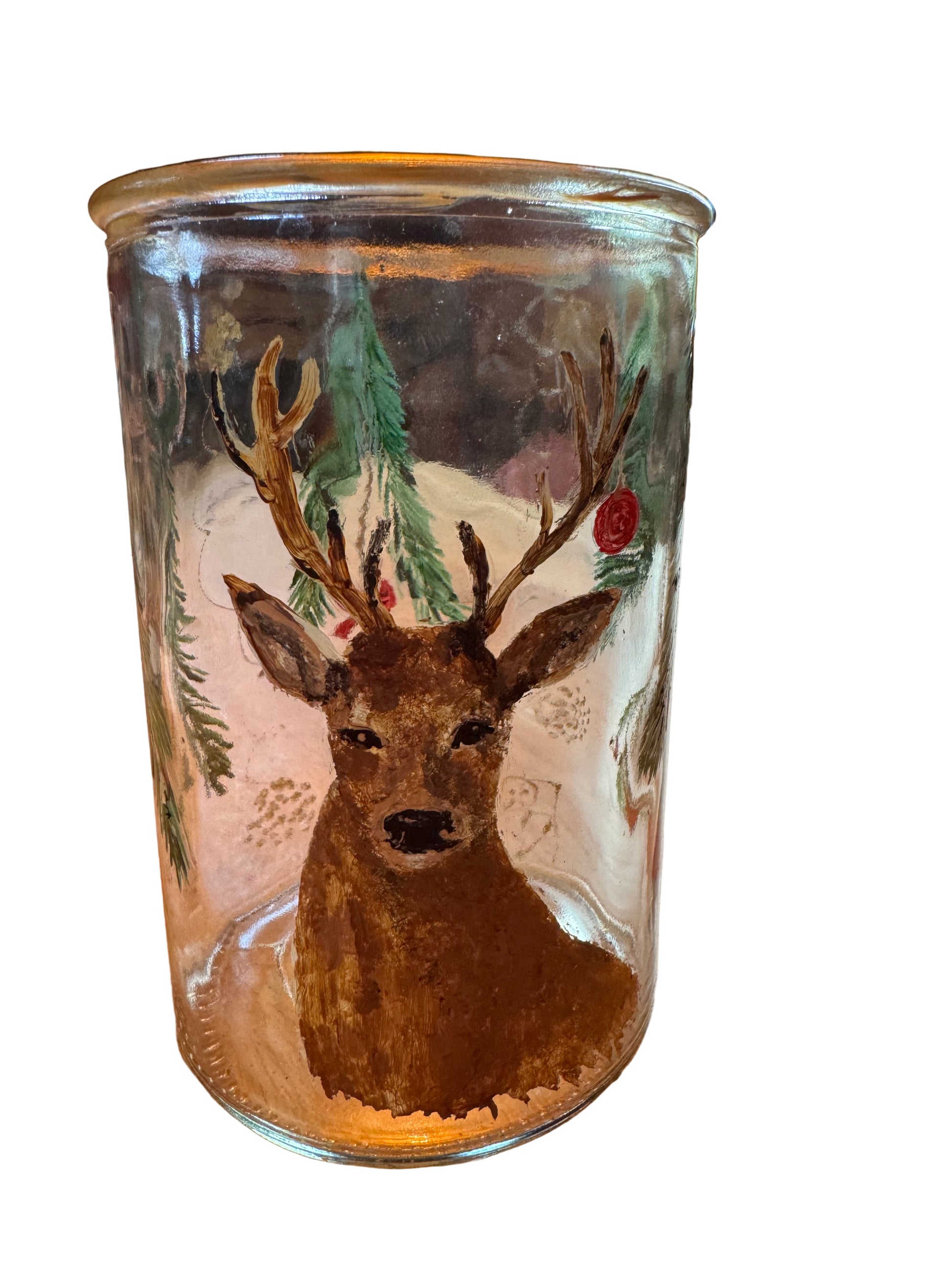 Lichtpuntjes zijn unieke windlichtjes, variërend van kleine waxinelichthouders tot grote windlichten van gerecycled glas. Elk lichtpuntje is met de hand beschilderd — van een roodborstje tot een edelhert, en alles daartussenin.